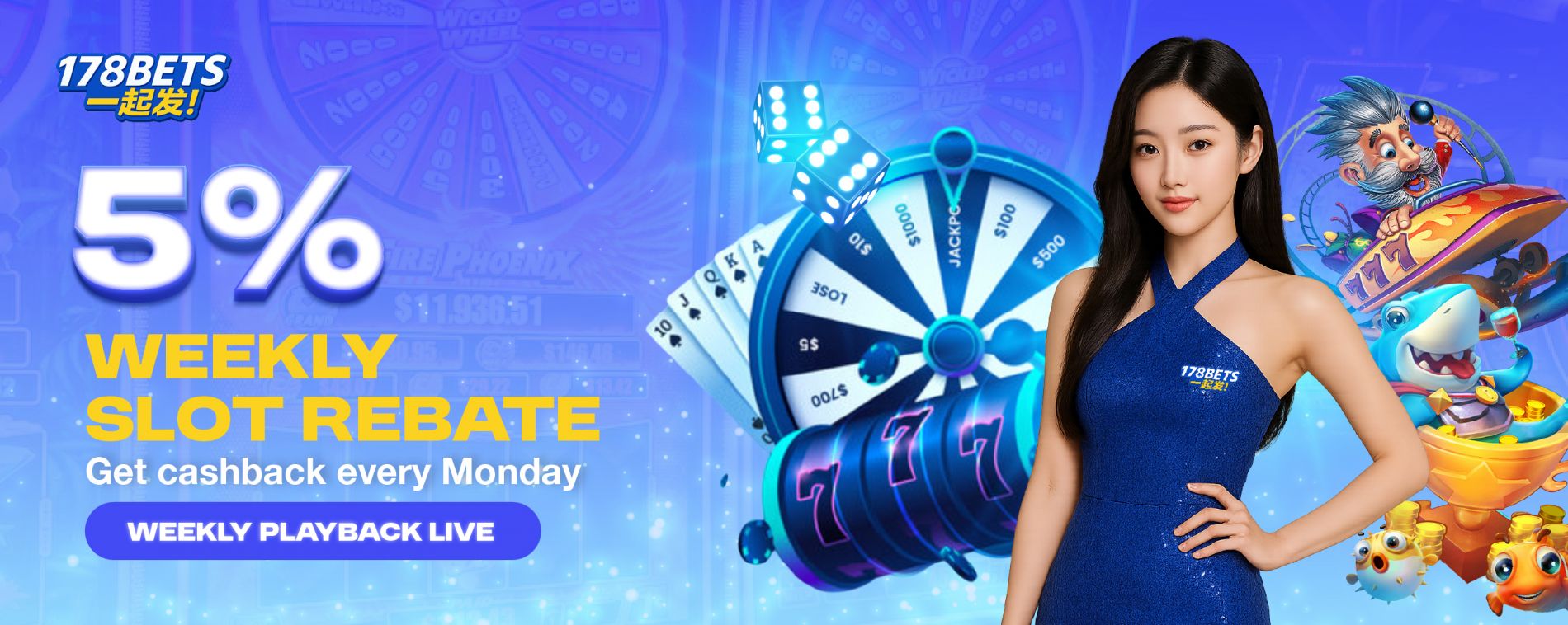 Turn your losses into rewards with the 178Bets Weekly Rebate Program. Whether you play slot games, live casino, or sports, you can receive up to 5% cashback every week — no wagering requirements, no hassle.